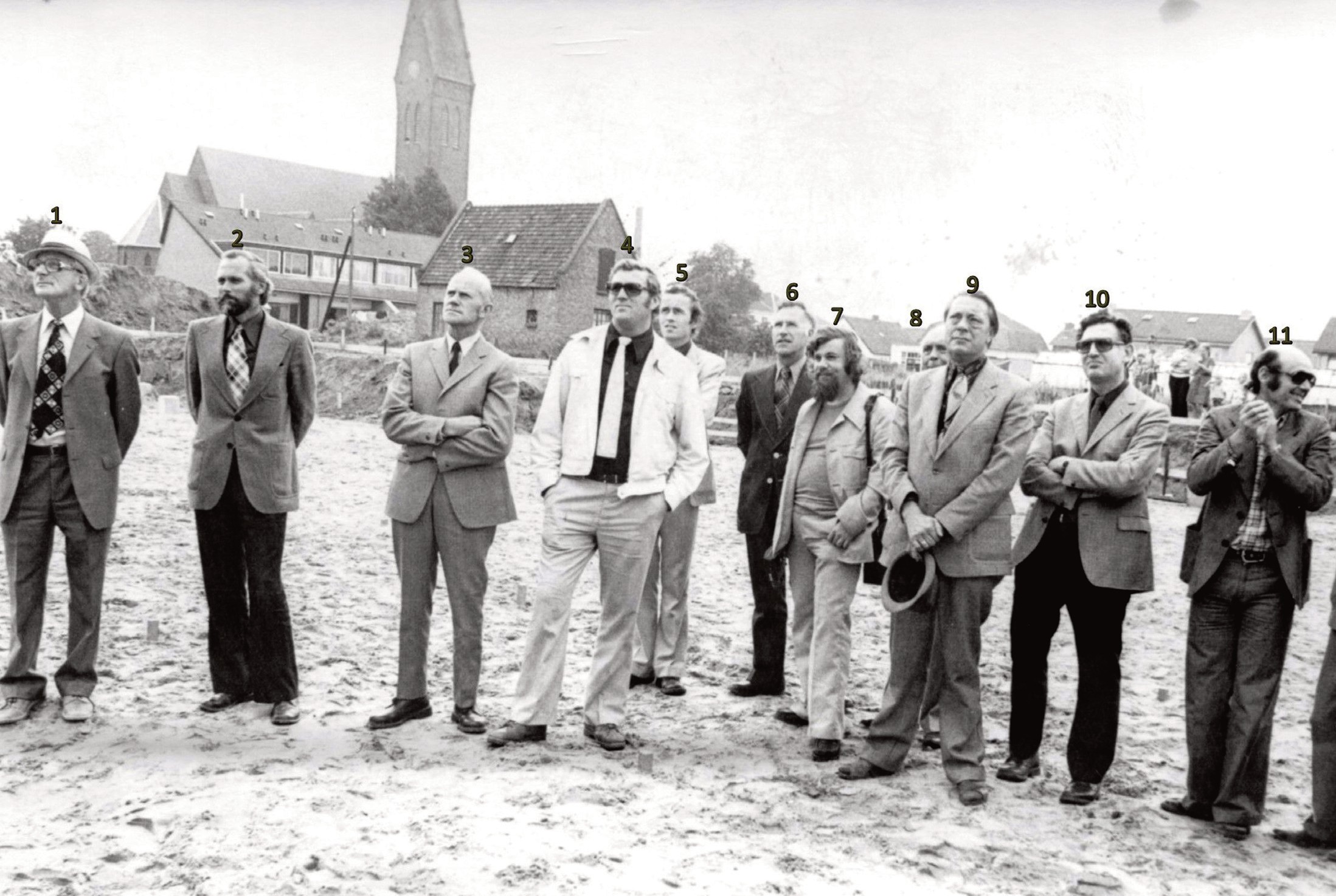 1 Nico van Kleef sr. 2 weth. Leen van Donk 3 weth. Jan den Hartog Jager 4 bestuur Jaap Weststeijn 5 bestuur Leo Borgonjen...